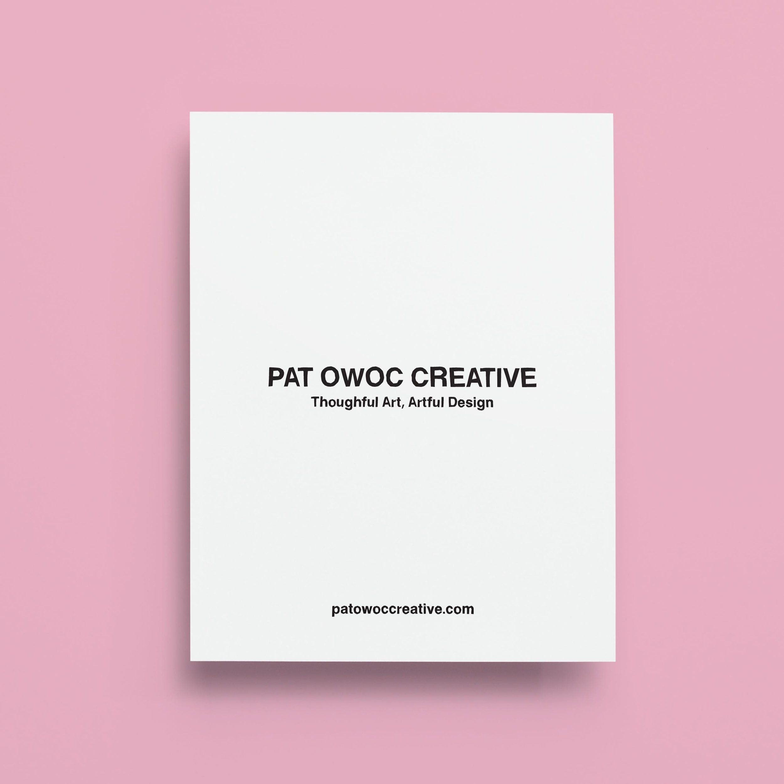 Card Details: Size: 5.5 x 4.25 inches (A2) Printed on heavyweight matte cardstock Blank inside for your own message Comes with an envelope Designed, illustrated and created by Pat Owoc