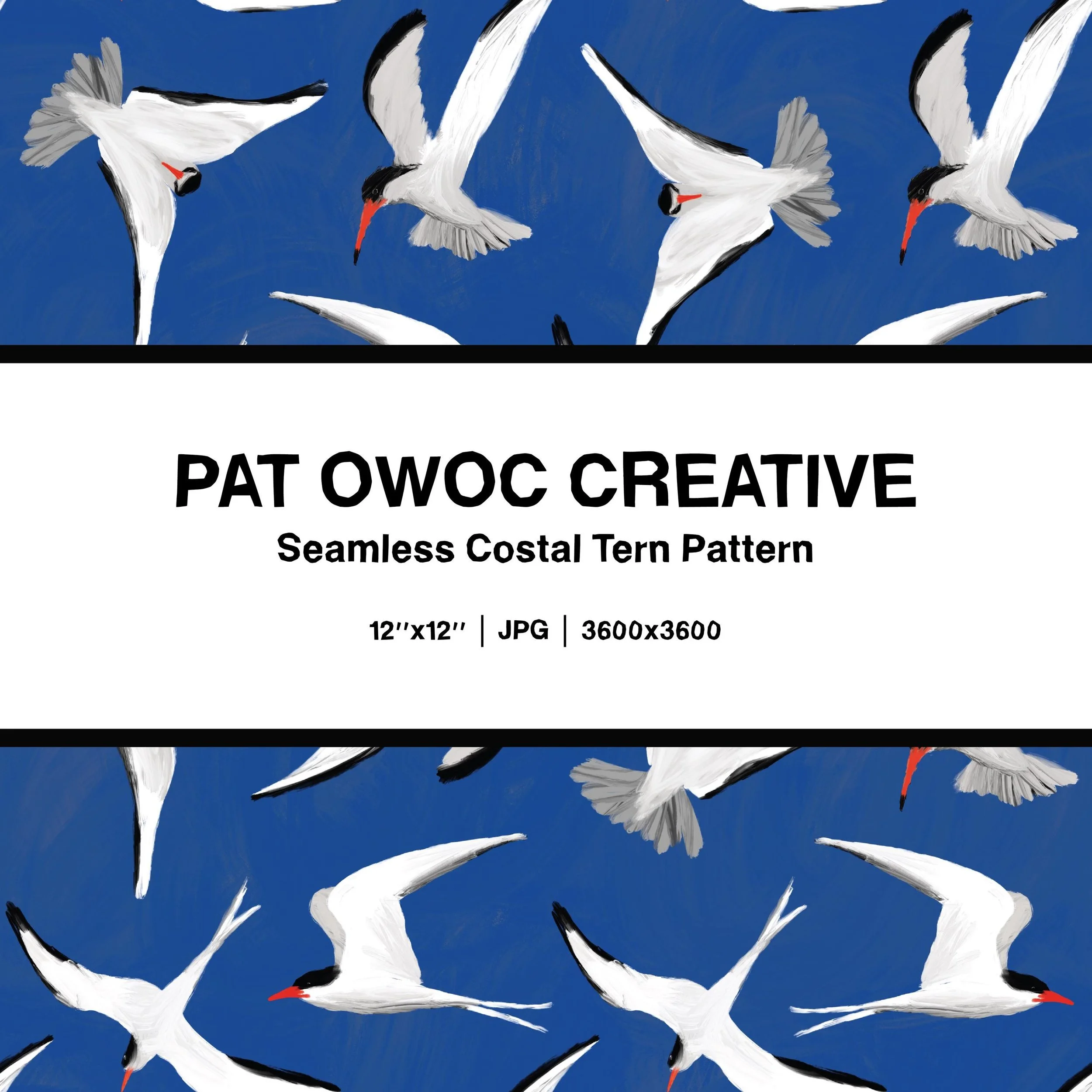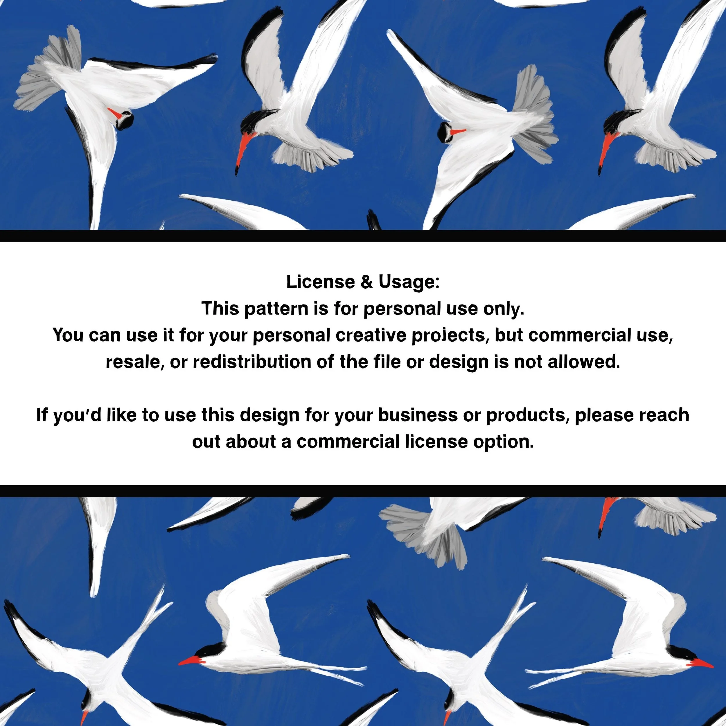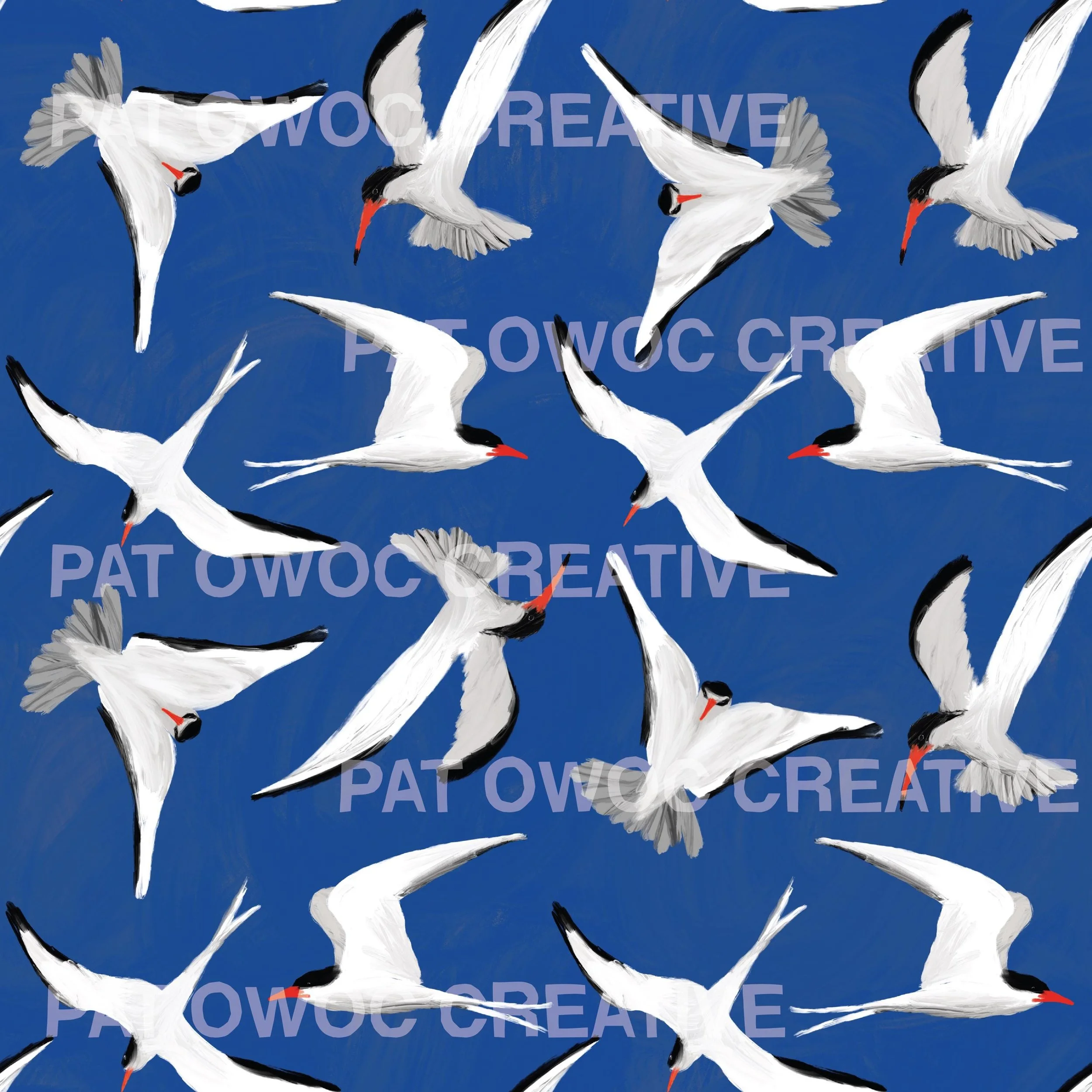 Painted Coastal Terns Seamless Pattern — Handcrafted Bird Digital Download, Beach-Inspired Background, Scrapbooking Paper, Personal Use Only