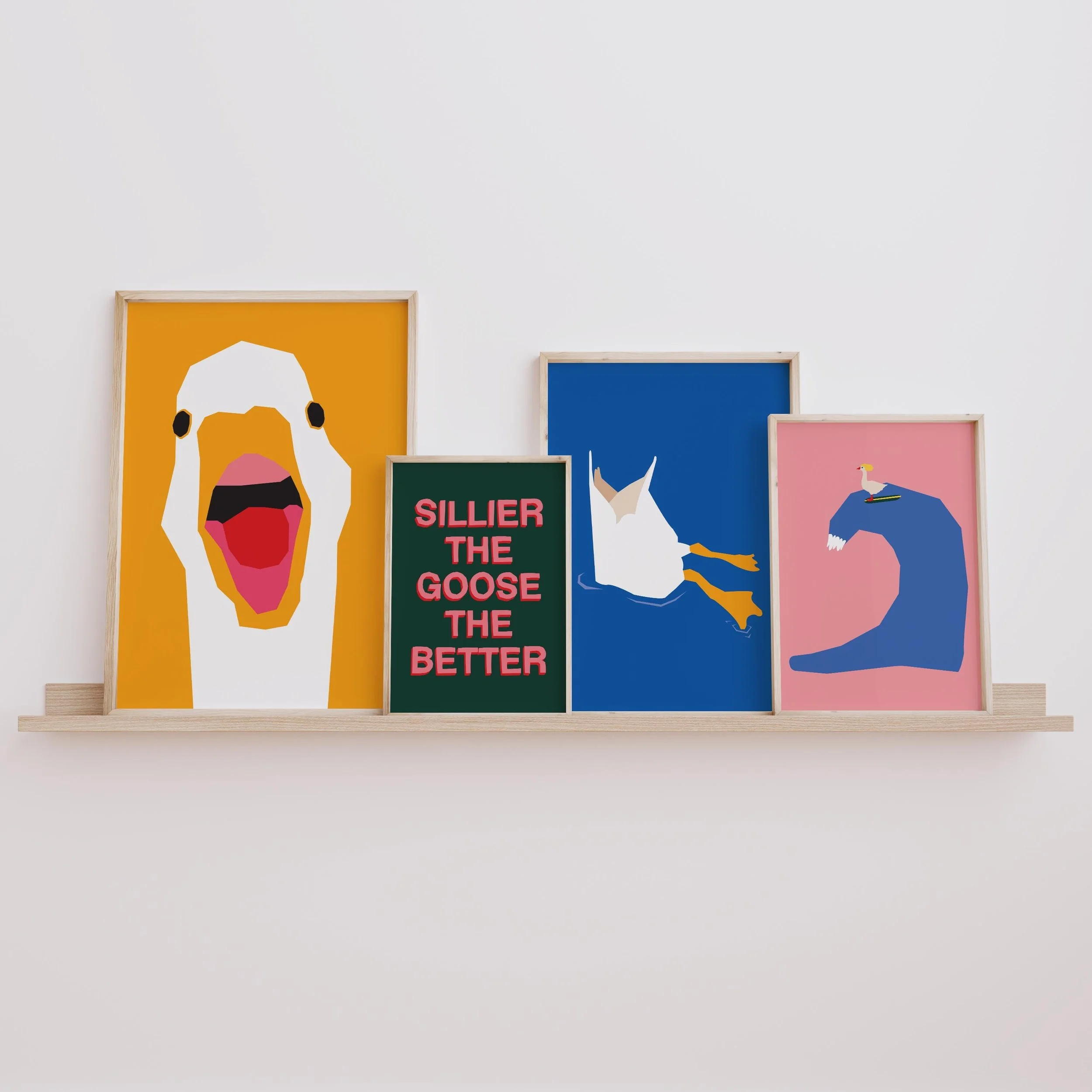 Set of 4 Silly Goose Digital Art Prints – Instant Download